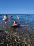 Период с 4-10.09.25. Вода в море 24 градуса, воздух - 24-29. Пляж чистый, крупная галька. В большей полосе пляжа свал на глубину в двух-трех метрах от берега. Пляж оборудован бесплатными раздевалками, платными навесами. День на лежаке 700 руб, альтернативы найти место под навесом нет. Туалеты - 50 руб. Душевые на пляже не предусмотрены. Плотность отдыхающих на метр квадратный высокая. Предусмотрены места для курения. Спасательных средств на воде не наблюдалось. Все остальные развлечения - «бананы», «таблетки» и прочие предлагаются коммерцией.
