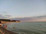 Если уйти влево от центра, к волнорезам, будет замечательный пляж, с мелкой галькой и песком. Выше пляжа находится парк санатория, в котром много зелени и слышно цикад. Жаль, что гулять по парку нельзя. Есть бесплатный туалет и раздевалки. Приплывали дельфины. Лучше всего быть на пляже утром пораньше вечером после 18.00
