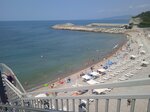 Галечный пляж, заход и выход затруднены - особенности местности- заход и выход по камням ( возможно это облегчит наличие обуви для пляжа и плавания). Зона пляжа в принципе чистая, после шторма убирали. Море чистое. Вид на море , ну обычный - бухта и горы. Набережная хорошая, чистая, кафе , ресторанов и разных развлечений как для, взрослых так и для детей тоже много.