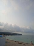 Пляж галечный, но заходить можно и без тапок. Вода прозрачная, но если штормило, то мутновато. На машине к пляжу не под'ехать. Пляж чистый, вид очень красивый. Кафе несколько вдоль пляжа, много развлекух и для взрослых и детей. Людей много, июль-август-сентябрь негде подстилку положить. Есть шезлонги и навесы, цена 300-800 рублей. Всем рекомендую, классный пляж