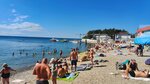 Хороший чистой пляж . Присутствуют кабинки для переодевания,душ. Лежаки в аренду, водные развлечения. Куча кафе рядом. В конце сентября народу не так много. Летом скорее всего все битком. Вода чистая. Пляж без мусора. С парковкой скорее всего не очень. И ещё очень раздражает мужик,который ходит и орёт в рупор предлагая автобусные экскурсии.