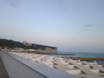 Очень неплохой пляж. Были в сентябре, места хватало, но летом скорее всего тесно. Вход в море пологий, камней больших нет, водоросли быстро убрали после шторма. На набережной куча развлечений и вкусняшек для детей и взрослых, есть водные аттракционы.