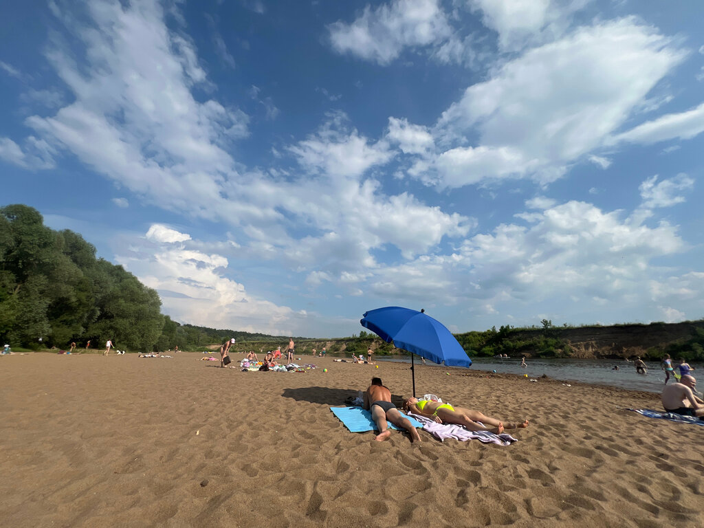Самый красивый пляж Подмосковья. Машины остаются на стоянке. Что приятно - к воде никто не подъезжает, не загораешь на парковке. Песок на пляже мелкий и чистый, река тоже мелкая и чистая. Удобно купаться с детьми. Есть кафе, туалет, прокат сап-бордов и горячая кукуруза. Можно прогуляться по экотропе вдоль реки. Если повезёт, на другом берегу будут пастись лошади