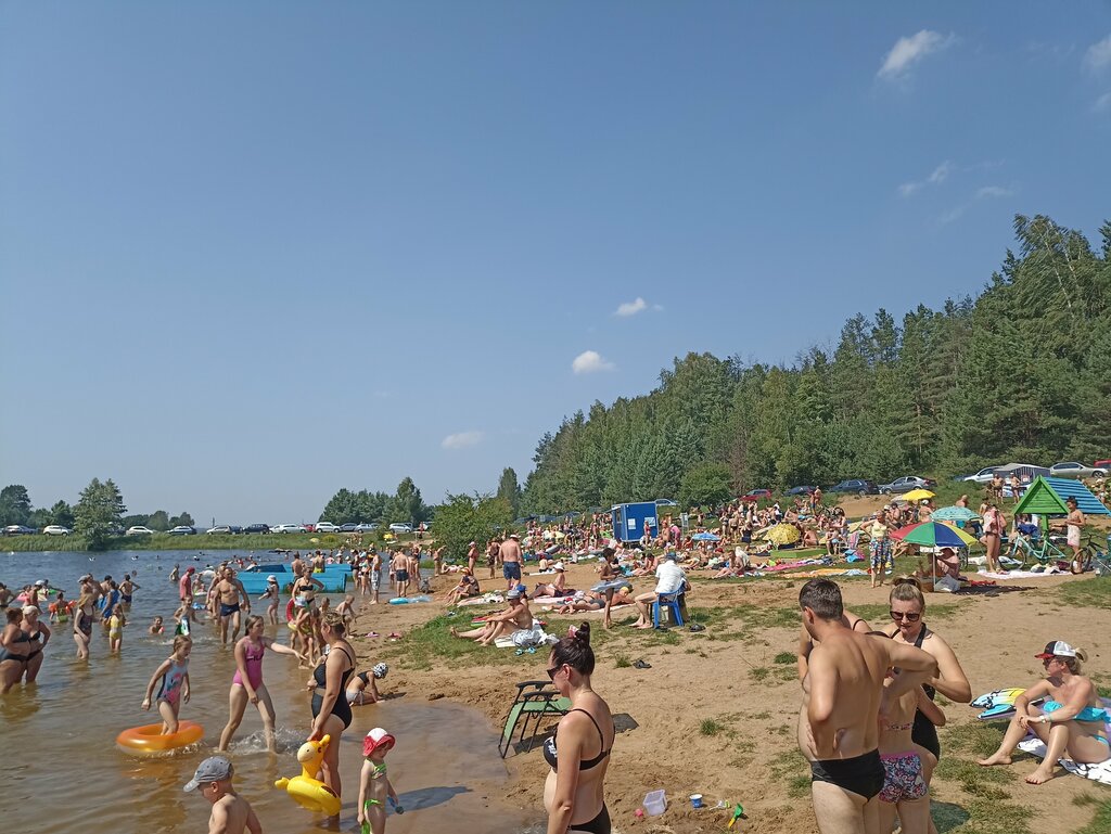 Good location, near Minsk, mixed beach, sandy grass, hard-bottomed river lake. The water is quite clean and cool, after all, the riverbed. There is a lifeguard, sun beds. The only question is about the toilet, like sartir