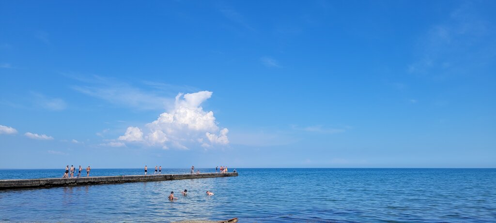 Любимый пляж. Сам пляж камни в воде песок, нет ни одной торговой точки, нет тени ни платной не бесплатной,туалета тоже нет, спасателей естественно тоже нет.