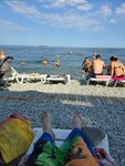Хороший пляж. Если вы гости отеля , лежаки бесплатны. Есть душ, спасатели и кабинка для переодевания. Между лежаками деревянная дорожка, что очень удобно чтоб не ходить по камушкам. Минус, курящие люди оставляют бычки., администрация старается следить за этим, но увы
