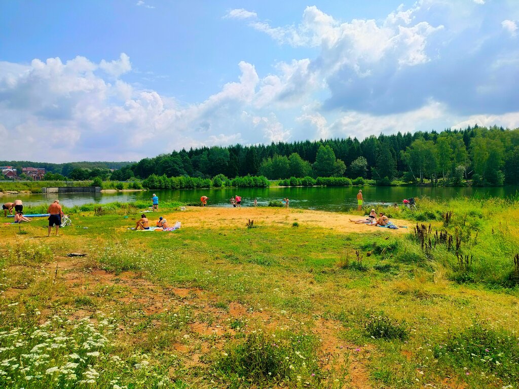 Место живописное , хороший водоем для катания с ребенком на сапе. Вода мутная , купаться не рискнул. Нет оборудованного пляжа. Есть один вход, более менее удобный остался с прошлого года. Там пытались сделать платный пляж. Вообще место достаточно приятное , тем более не далеко живем.