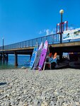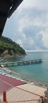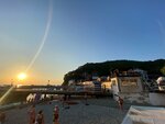 Пляж хороший,чистый-не первый раз там бываю.Справа от пирса пляж с большими камнями,а слева камни чуть мельче.Есть рядом кафе-очень уютно и официанты вежливые и приветливые.На пляже есть прокат катамаранов,шезлонгов и бунгало.В целом-если камни на пляже не смущают(всегда можно приобрести на рыночке тапочки для купания,чтобы ногам не больно было ходить по камням),то отдых в этом месте очень хороший!