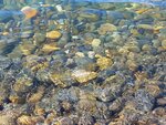 Вода кристально чистая!! Людей, в низкий сезон не много, но и безлюдным не назвать. Рядом столовая со свежей едой. Были с детьми, без специальной обуви трудно по гальке передвигаться. - грязно на берегу (мусор, обломки дерева)