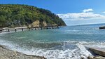 Пляж понравился, красивое место. Пляж небольшой, камни, иногда крупные, при заходе в море тоже камни. Без тапок для купания будет не комфортно. Были в не сезон, нашли место где припарковать машину, в сезон думаю с этим будут проблемы, правда есть платная парковка, но не очень большая. Место спокойное, вода чистая, нет от моря неприятного запаха , как например в Геленджике. Приехали сюда из Геленджика, там на пляжах был неприятный холодный ветерок, а тут красивая скала, с соснами закрывае пляж от ветра. Было очень комфортно загорать, купаться и не хотелось уезжать.