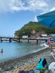 Как плюс так и минус - далеко от цивилизации. Пляж небольшой, в высокий сезон много отдыхающих. Лежаки есть, но без матрасов. Бунгало тоже. Пляж каменистый, это не галька. Вход в воду поэтому проблематичный. Моторные лодки постоянно ходят, катер, все прям на берег, где отдыхают, оставляя масляные следы, вода естественно не очень чистая. Есть в прокате катамараны, доски для сап серфа. Пирожки продают)