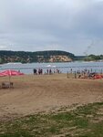 Пляж - мелкий песочек. Вода чистая, прозрачная. Есть раздевалки. Нормальный туалет, платный. Волейбольные площадки, кафе, водные лыжи и т.д. Везде чисто. Дежурят спасатели. Мне понравилось, обязательно поеду следующим летом)