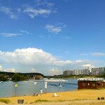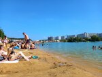 Длинная береговая линия, можно найти место в теньке под деревом. Песок мелкий, не очень чистый, редко находили стекла. Есть раздевалки, но кто то использует ещё как туалет (((жуть. Музыка, вейкборд, волейбол. Купаться запрещено, но народ купается.