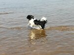 Отличное место для небольших собак. Вода глубиной 10 - 30 сантиметров длится очень долго. Мы с подругой делали здесь фотосессию с нашими собаками. Вода вполне хорошая. Можно вдоволь побегать 👍.