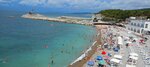 Большие чистые пляжи разделены пирсами уходящими в море, пирсы облагороженные,есть никелированные лестницы для погружения в воду,видно, что каждый год проводятся работы для подготовки к курортному сезону.