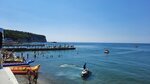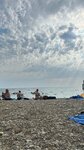 Нормальный пляж, с утра и вечером очень много людей, мы ходили к 12 и были где то до 3-4 часов тогда народу по меньше все уходят отдыхать и на обед в это время, справа причал с лестницей для прыгунов в море, садились ближе к правой стороне т.к. с детьми а там более плавный вход в море. В целом пляж хороший, все понравилось, кроме самого поселка, но это другая история здесь отзыв именно про пляж. Лежаки не арендовали но от людей слышали что цены 🐴. Есть водные развлекухи банан таблетка гидрик и прочее. Недалеко продуктовый магаз.