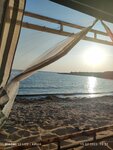 Пляж отличный!🌊 Если хотите шезлонги-пожалуйста; навесы или просто кинуть коврик на песок. 🌞 Есть урны и мусорные баки, после шторма(как и везде) бывает много водорослей. Вход в воду постепенный, без обрыва- с детишками самое то 🤗👍
