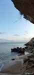 Уютный мини пляжик под скальным навесом. Когда народа мало, то приятно искупаться-песочек, чисто, вход удобный. Но скала над головой, хоть и подпëрта балкой, ну напрягает (