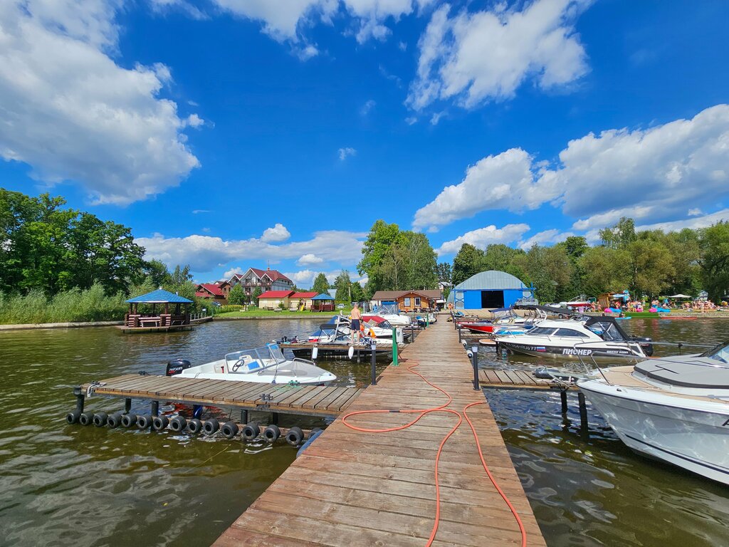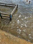 Летом прекрасно, много развлечений, есть возможность порыбачить. Есть Единственное не очень удобный спуск, высокая ступенька при входе в воду. Место купания для маленьких детей, но пол деревянный и скользковато, водоросли.