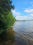 пляж симпатичный (газон и немного песка), заход в воду с бетонных ступенек, вода очень мутная. можно арендовать катамаран, сап. можно купить горячую кукурузу в ларьке (не пробовали, но чувствовали запах). в общем, пляж для загара и для активных игр подойдет (есть волейбольная площадка), а купаться уже на Ваше усмотрение (на мой взгляд грязно). на территории есть домики, ларек отбрасывает в СССР по времени, но симпатично. парковка вдоль забора есть бесплатная и на территории 200 р. туалетов не увидела