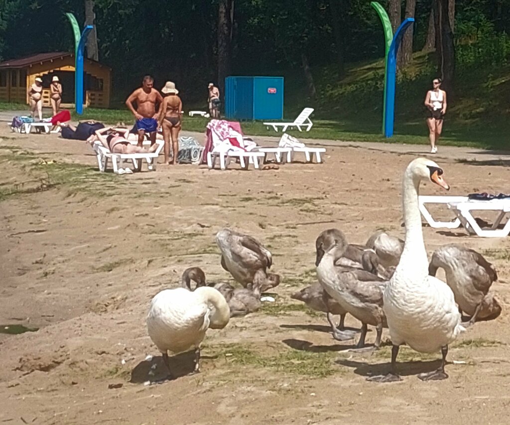 There is a branch of Minsk paradise on this beach (I'm not kidding!). Gazebos, barbecues, children's "zones" with slides and sandboxes, deck chairs, a volleyball court and... ducks, seagulls, swans. Someone is fishing, someone is barbecue ... REST!!!