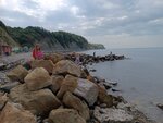 Отличный пляж, без огромного количества людей и назойливых продавцов, место изумительное, ловил крабов, рыбу и много купались, из минусов берите обувь для воды, камни немного раздражают, но есть отличный Пирс с которого можно купаться хоть весь отпуск