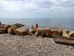 Плюс. Отличное море, запах, соль водоросли, очень мало людей, есть маленький барчик, пиво 100 ₽, кофе 100–180 ₽. Минус. Арендаторы пляжа ничего не делают для его благоустройства. Мусор не убирают. Но главное это камни, мест для детей нет, да и взрослому очень сложно искупаться и не поколечится. Готов изменить отзыв при положительных переменах. А так, ставлю жирный минус и пошëл дальше убирать камни, что бы дети могли безопасно купаться.