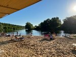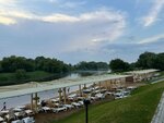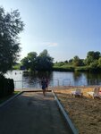 Прекрасный пляж, чистейшие туалеты и душевые, кафешка с разнообразными закусками. Рядом зона для Барбекю с беседками и всем необходимым для шашлыка. Река очень сильная, течение сносит, для детей небольшой огороженный участок.