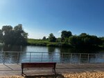 Прекрасный, чистый пляж с красивым видом на реку. Так же присутствует детская зона что очень обезапасывает детей. Также присутствуют разные развлечения на воде как сапы и другое, на котором можно покататься в 3 и больше. Ещё присутствует прокат удачи и ты с удовольствием можешь провести время за ловлей рыбы которой достаточно много. Всем советую посетить и отдохнуть.