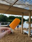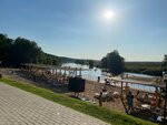 Прекрасный песочный пляж! Даже в выходные можно найти свободный лежак или расположиться на травке) В реке огорожена зона для деток, все купаются и копаются в песочке 🪣 Есть прокат сапов, много людей плавают, классно! Рядом кафешка, где можно перекусить 👍🏼