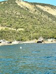 Пляж разделён на два, если стать лицом к старому маяку. Слева примерно такой же рельеф, что и в Сукко, но маленькая прибрежная галечная полоса для загарающих из-за построек. Справа прибрежная полоса больше, но дно усеяно валунами, большими, можно стоять на них. Проблема с выходом и заходом, нужно подплывать к самому берегу, а потом вставать. Валуны скользкие, я почти всегда падал, слава всевышнему без травм. Для дайвинга хорошо, вода чистая, много придонной рыбы. В кафешках цены, я бы сказал высокие, море же. Отсюда плавали на баркасе на рыбалку, лично мне не очень понравилось. Опускается груз на удочке с 3-5 крючками, на крючке кусочек кальмара, поднимаешь с рыбой мелкой. Азарт есть, адриналина нет, типа как на работе. Остальным понравилось, жене тоже понравилось, я же ей наживку на крючок и рыбу с крючка, тоже снимал. Телефоны там на каждом углу на плакатах. С деньгами было все честно, часть перевели авансом, чтобы забронировать места на баркасе, остальное капитану наличиными. Это моё сугубо личное мнение.