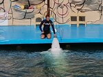 На самом деле, все довольно печально! Согласно рекламе, мы должны были увидеть выступление дельфинов "в открытом море". Открытым морем там и не пахнет. Клочек отгороженой протоки, прохода в бухту, где стоят катера и яхты. Конечно, вода общая. Но места настолько мало, что белухи даже разогнаться не могут. К артиста, как к людям, так и животным, претензий нет - они великолепны. Но даже ведущий поведал нам, что уже на будущий год их уже может не быть. Экскурсовод в автобусе, просила не обращать особого внимания на неприглядность территории Утриша. За Утриш идёт активная грызня, спасибо рыночной действительности, и нужен ли будет дельфинарий новому хозяину неизвестно! Плюс разруха на пляже, и прилегающей территории. Узкая дорога, супер дорогая стоянка, облезлые скульптуры и т. д. Зато природа, склон хребта, вне всяких похвал - мощно, грандиозно, впечатляюще!