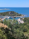 Шикарное место. Красиво. Там находится дельфинарий. Очень интересное представление, которое понравится и детям и их родителям. Море просто сказка - чистое, крабики водятся. Есть небольшое кафе, где можно посидеть. Но надо иметь ввиду, что пляж и вход в море сложен из крупных камней. Ходить больно. Заход очень скользкий