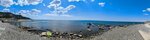 Пляж, с одной стороны мелкая галька, вода чистая ,но холодная. С другой стороны камни побольше, волны но вода тёплая и чистая, есть лежаки, развлечения, прокатывает, кафе на берегу. Массаж. Вид очень красивый. Но в воду заходить и выходить босиком тяжеловато, камни прям впиваются.