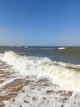 Пляж хороший, но есть медузы, прибивает их к берегу ,вода грязновата отдыхать норм, когда волны небольшие и нет медуз. Магазины и кафе рядом, вдалеке видно старую нефтянную вышку. Сейчас там птицы гнезда вьют.