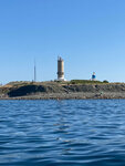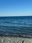 Были на пляже у маяка с левой стороны, если смотреть на море. Сам пляж-узкая полоска гальки с уклоном к морю, заход нормальный в аквашузах, т.к. галька среднего размера, метра, через 2-3 глубина. Сам пляж пыльный и грязный, много окурков и мусора, море у кромки мутное, видимо на дне есть какой то осадок, но на глубине вода достаточно чистая, правда было много мелких медуз. Удручает само состояние береговой линии и поселка-развалины зданий времен СССР, битва за парковку (бесплатно можно оставить ТС вдоль дороги, а если на какой-нибудь площадке, то уже надо платить ушлым парковщикам),на дороге люди и машины вперемешку. И самое "приятное" туалеты на пляже закрывают в 19 часов.