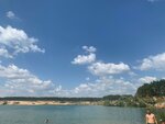 Вообще, добывающая компания запрещает там купаться, везде стоят знаки) но всем все равно, в хорошую погоду народу тьма, некуда машину ставить. Из за того что на другой стороне качают песок, немного "затягивает" в глубь карьера, будьте осторожны. Не оставляйте детей без присмотра и сами не заплывайте далеко!