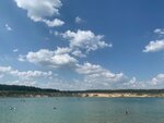 Водоем в окружении леса. Место очень понравилось! Песчаный чистый пляж, прозрачная и нежная вода! Для семейного отдыха рекомендую. Обязательно нужны солнцезащитные средства и средства от мух и комаров, так как вокруг леса.