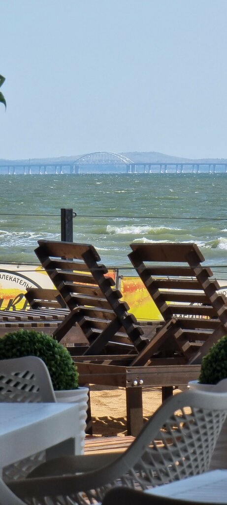 Пляж для тех, кому не нужен аквапарк. Хорошее чистое, тёплое море, рядом крымский мост, ночью он весь горит огнями, вид просто завораживает.