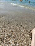 Иногда мне попадаются крышки пивные, окурки сигарет! Увы хватает и тех кто курит при наличии детишек!!! Вопшем хватает всяких!!!! Торгуют кукурузой, остальными вкусностями. Лежаки это отдельная тема. С 8:00 до 18:00 200р стоит, пошёл на обед по возвращению мой лежак уже продали другому человеку, а мне ищи другой свободной!!!! И не зависимо от того взял ты его в 9:00 или в 16 :00 цена 200р.Пляж мелкая галька.
