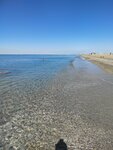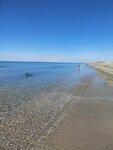 Пляж чистый, мелкая галька с ракушечником. Место тихое, спокойное, очень удобно с детьми. Вода чистейшая, но частенько холодная. Мест парковочных достаточно всем. Развлечений для детей полно. Кафе тоже есть недалеко. Из минусов- постоянный ветер, и мало растительности.