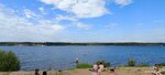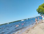 Обычный берег реки. Присыпан местами песком. Есть бесплатный пляж, есть платный со входом 500р с человека, там мы не были) Заход в воду хороший, водорослей не много. Раздевалок мы не увидели, туалетов тоже. Рядом есть ларьки с едой и напитками.