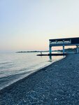 Nice clean beach. Large pebbles. There are changing rooms. After the sea, you can take a shower. The sea is clear. Umbrellas, sun beds, cafes with pleasant music. All people are decent, well-mannered and friendly. But if you want to go to the bathroom, find out where it is in advance. I did not notice the descents to the sea for people with limited mobility and mothers with strollers. There is plenty of entertainment. I enjoyed it