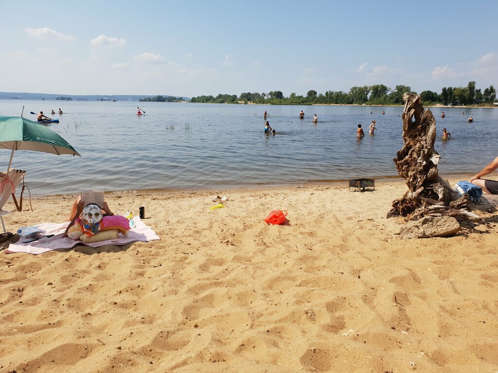 Были в Казани 2 дня. Стояла жара. Искали ближайший к квартире, которую снимали, пляж. Навигатор выдал этот. К плюсам близкое расположение, удобно добраться на общественном транспорте. Довольно протяжённый песчаный берег. Здесь удобно купаться с детьми, так как глубина небольшая. Отсюда открывается красивый вид. Минус 1 звезда за отсутствие кабинок для переодевания