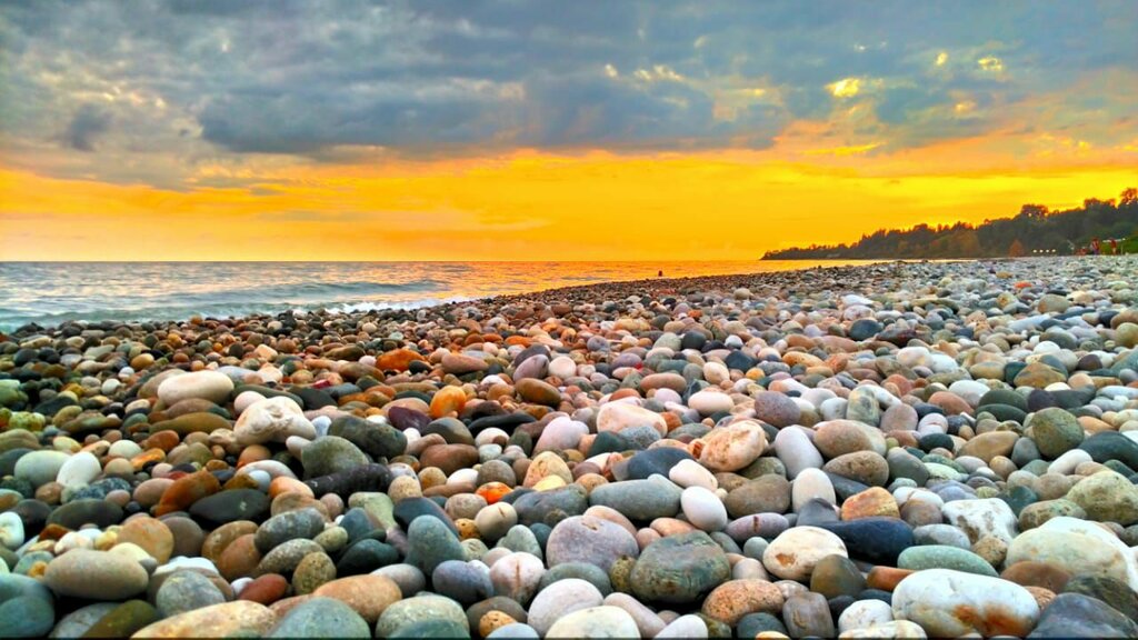 The beach is pebbly, clean, and there is a cafe nearby if you want to have a snack. I really liked it, it's not far from the hotel. Dogs, however, run, you can't drive them away from you, but they are harmless))