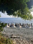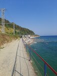 Отдыхали с мужем вдвоём, шикарное место, шикарный пляж, отдыхали 4 дня, вода прозрачная как стекло, теплая как парное молоко даже утром (сентябрь на дворе). Пляж каменистый, крупные камни, лучше приобрести специальные тапики силиконовые чтобы не ранить ступни. Наловили мидий и крабиков, сварили и скушали с удовольствием, а так же поймали три змеи под капот и одну под палатку - это 1 минус. Из машины змей выгнали путем прогрева движка, там должно стать горячей, сами повылазили через днище, другие способы не помогут, даже не пробуйте, мы испытывали многое, так советуем палатку ВСЕГДА держать закрытой, как и машину. Рядом электричка, от пляжа 50 метров (расписание на перроне) и можно съездить в соседние поселки, где тоже очень интересно и есть всё необходимое, будете ехать на Лазаревское, смотрите в окно, присутствует пляж нудистов)))) Мы оставляли машину и палатку - катались, на этом пляже только местные в основном и никто ничего не тронул. Приятно отдыха!