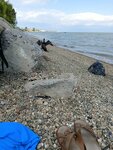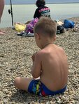 Дикий пляж, ни туалетов ни раздевалок, народу поэтому не очень много. Вода мутная, не стали купаться, запах неприятный, как будто весь частный сектор туда сливает свои какахи. Ужа зато водного встретили