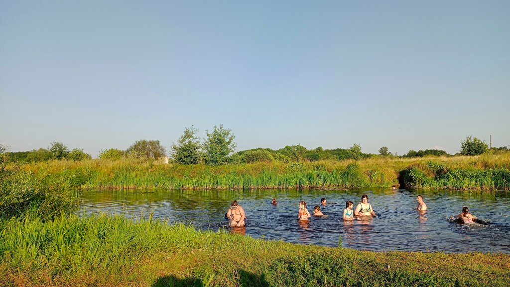 Пять звезд только потому, что рядом с домом! Это не пляж, а небольшое местечко среди камышей, куда местные ходят искупнуться))) Самопротоптанное место))) Но движухи на одном квадратном метре из имеющихся 15-ти хватает))) Вэлком)))