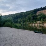 Отличное было место, пока его не превратили в свинарник. Вид тут никакой - напротив отвесный склон, видно только его, зато был хороший пляж. Сейчас лес заполнен мусором и человеческими испражнениями, весь пляж, каждый заход к воде усеян одноразовыми мангалами. На одном из пляжей оставили шампуры, воткнутые в песок, страшно подумать где бы они оказались после половодья, если бы я их не выкинул. Съездить туда нужно только с одной целью - увидеть с какими свиньями вы живёте на одной земле.