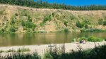Относительно чистая вода, удобный вход в реку, крупный песочек под ногами, виды вокруг, опять же - все, что надо для приятного отдыха... Но люди! Очень много людей (хоть были мы в будний день), которые оставляют за собой тонны мусора и устраивают туалет под каждым кустом. Палатки стоят друг от друга на расстоянии вытянутой руки. А если учесть, что до места от крупного города не менее 80 км, то просто "на речку" вариант так себе. Противоположный берег в этом плане выигрывает, хоть и течение там ой-ой-ой.